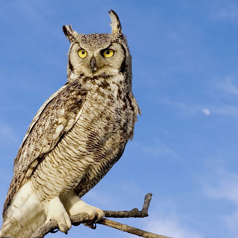 Great horned owls often have a mottled or zigzag pattern, especially on their wing and tail feathers. Their feathers also tend to be darker and less refined in pattern compared to the barred owl’s more evenly spaced barring. Additionally, great horned owl feathers may appear more rigid, as the bird is larger and built for powerful, strong flight.