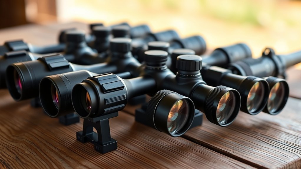 Some scopes feature multi-reticle options, letting you switch between tactical and hunting setups. Selecting the right reticle type and illumination guarantees your 1-6x scope performs effectively in diverse shooting scenarios.