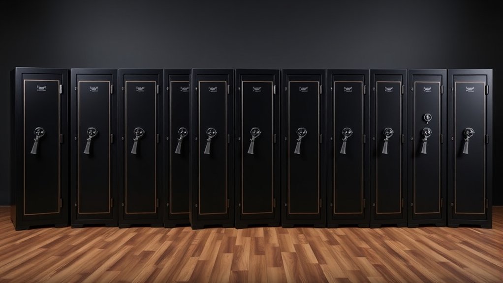 Although steel thickness guarantees your safe’s durability, the locking mechanism ultimately controls who can access your firearms. You’ll find several options: electronic keypads offer programmable codes and quick access but need battery upkeep and risk power failures.