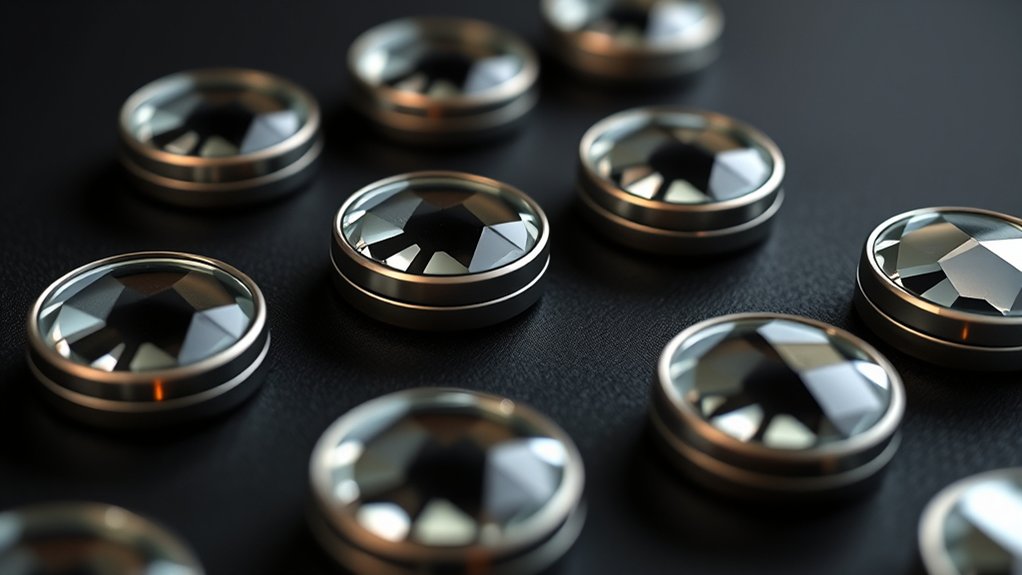 Advanced coatings like anti-reflective and hydrophobic treatments improve visibility in varied lighting and protect lenses from moisture and dirt. Remember, the design and quality of the optical components also impact your field of view and overall performance. So, select prisms with specifications that match your shooting needs for the best results.