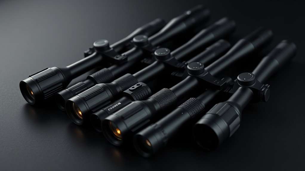 Waterproof and fogproof features let you rely on clear, sharp visibility even during long hours in tough environments. Plus, weather-resistant scopes undergo shock and recoil testing, so they’ll hold up to rugged outdoor use and heavy recoil without losing zero. Choosing a weather-resistant scope means you’re ready for whatever nature throws at you, keeping your aim steady and your sight picture clear every time.