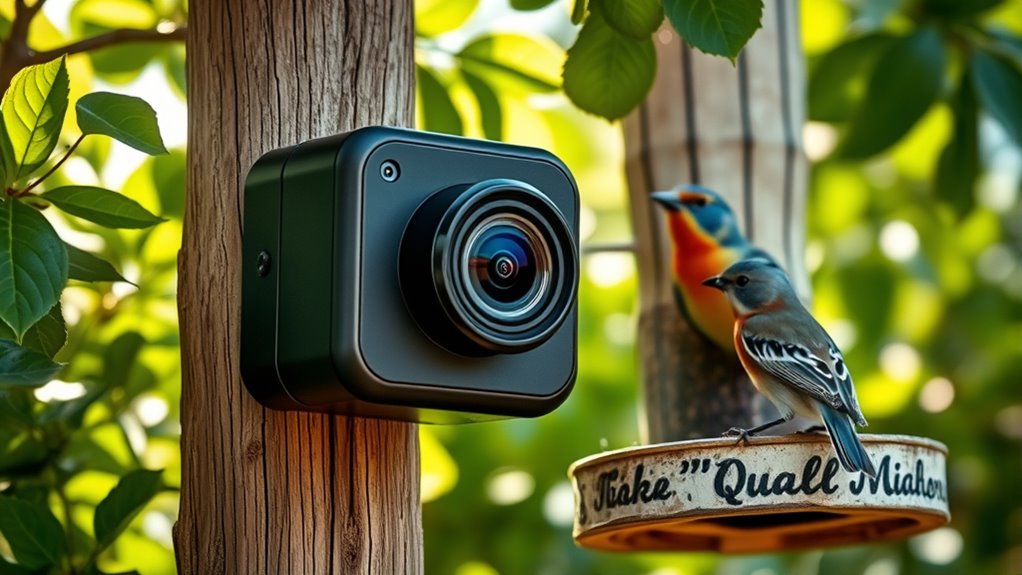 Easy setup and local or cloud storage options make birdwatching simple and fun. Keep exploring to discover which models best combine these features for your ideal birdwatching experience.