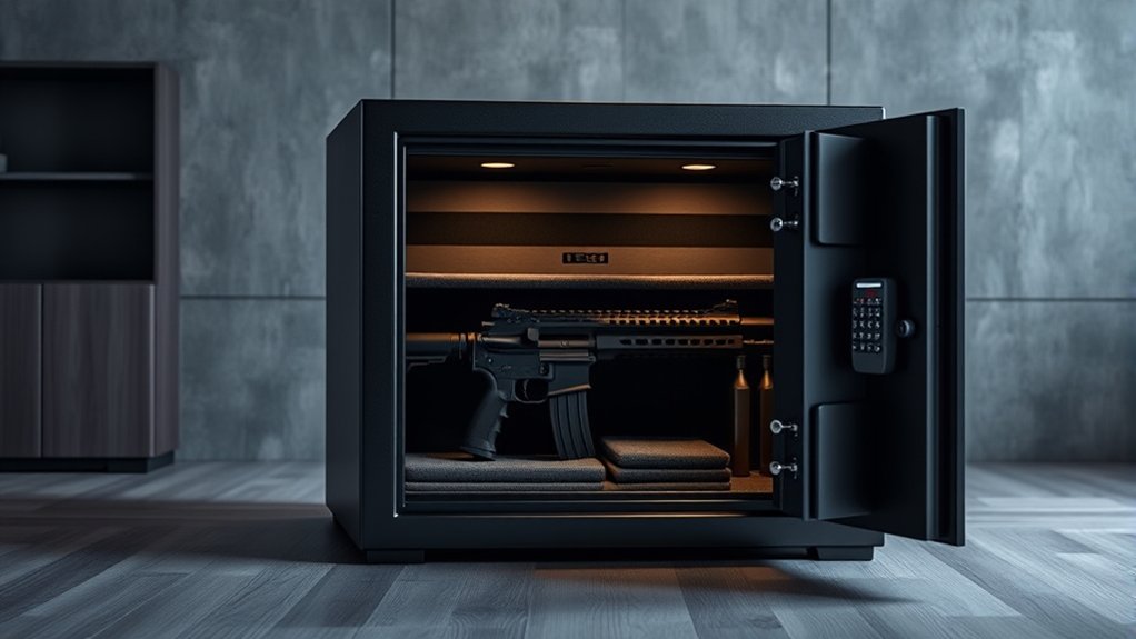 Mechanical keys act as a dependable backup if electronics fail or batteries die. Many safes combine these methods, like biometric plus keypad or key, to boost security and flexibility. Picking the right lock type guarantees your firearms stay secure while staying conveniently accessible when you need them most.