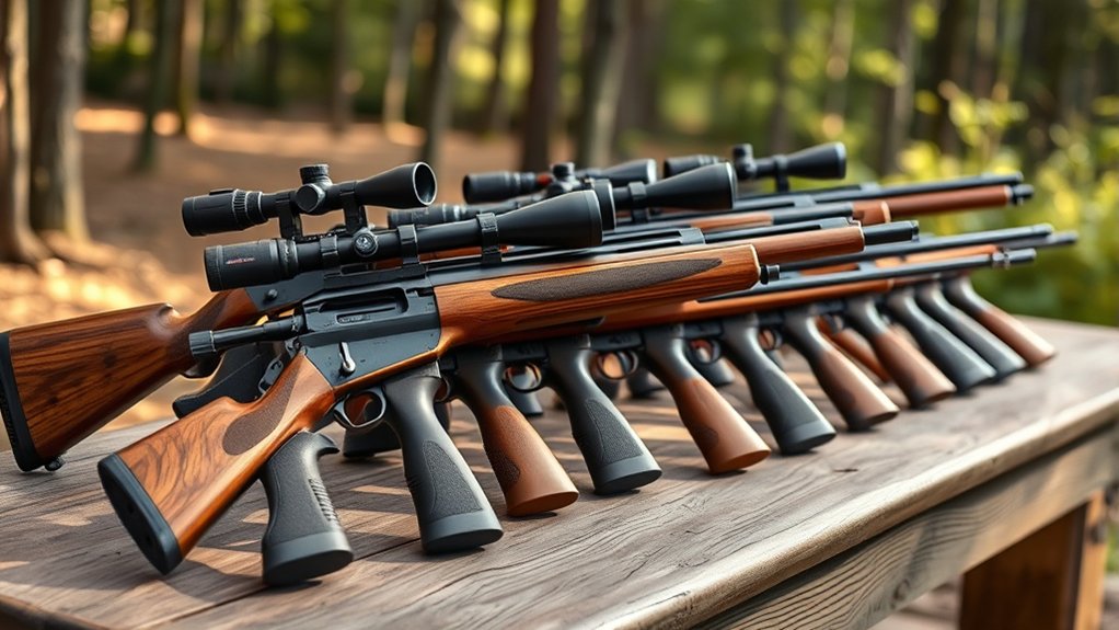 Look for compact designs, typically around 40 inches or less, to enhance portability and simplify transport. Slim, ergonomic stocks improve handling without adding bulk, so you won’t feel weighed down.