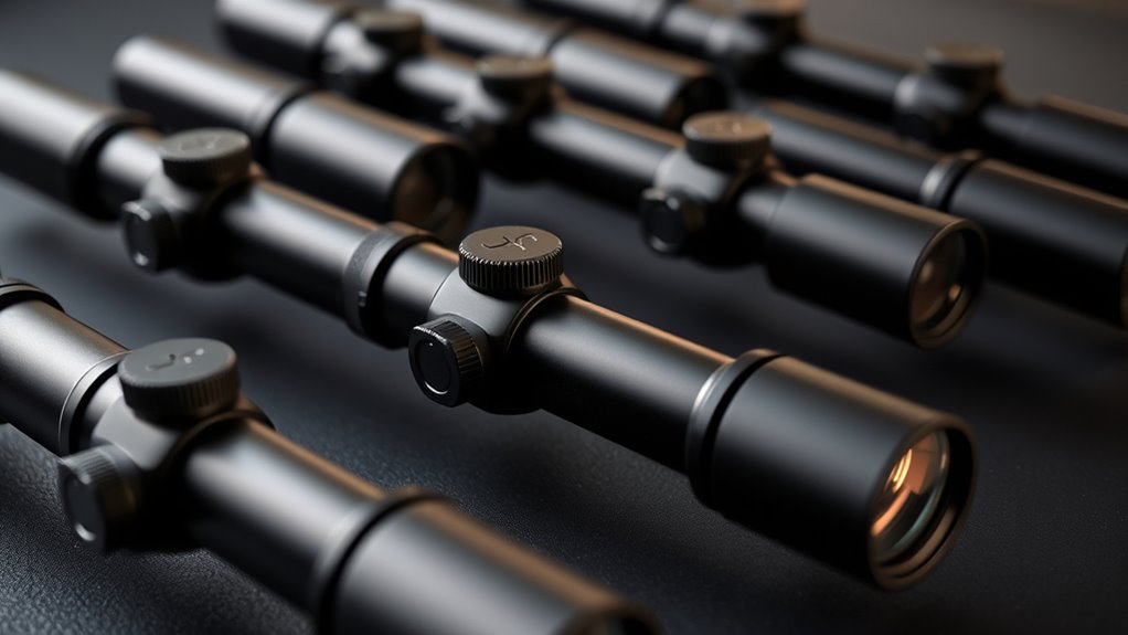 Although reticle types vary widely, understanding their features is key to matching your air gun scope with your shooting needs. You’ll find simple duplex reticles ideal for quick target acquisition in daylight, while illuminated Mil-Dot or crosshair reticles excel in low-light conditions. Some reticles include extra markings for range estimation, windage, and holdover, enhancing accuracy at different distances.