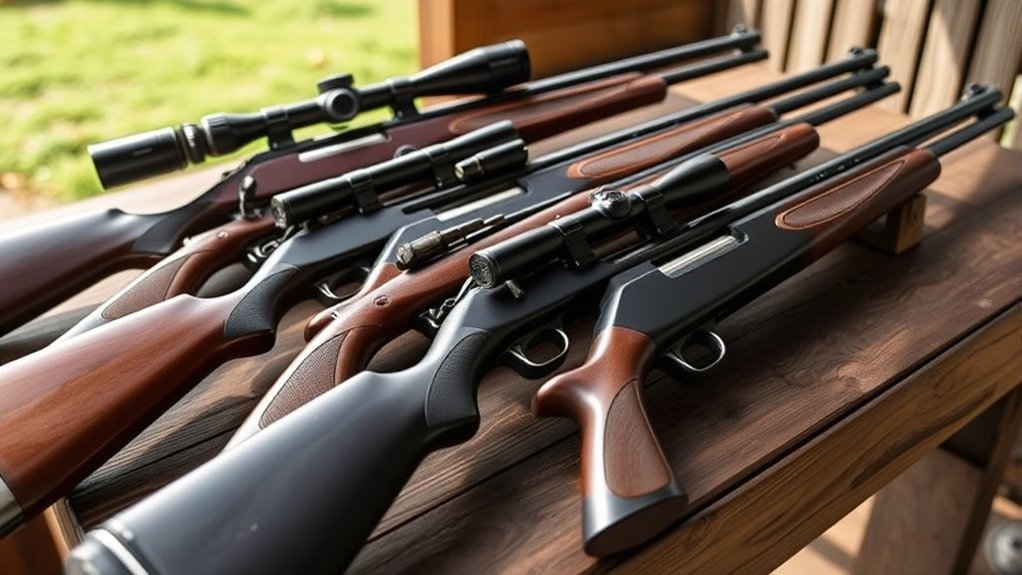 With features like shockproof scopes and noise dampeners, these rifles suit outdoor use and stealthy shots. Keep exploring, and you’ll discover which ones fit your needs perfectly, from precision target shooting to effective pest management.