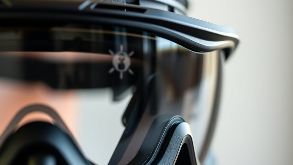 Pay attention to the overall weight, especially if the fan adds extra bulk, to avoid fatigue during gameplay. Guarantee the design fits different head sizes and shapes, including options for those who wear glasses underneath. Most importantly, verify that the fan system doesn’t compromise the seal or fit of the goggles.