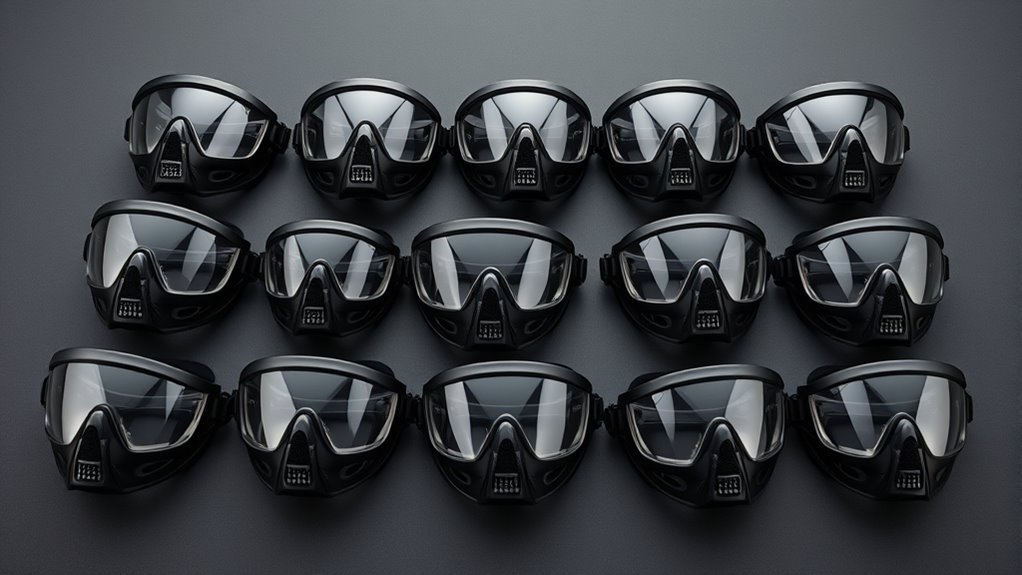 Options like Lancer Tactical and Xaegistac provide comfort with padded straps and spacious designs for glasses. Many masks also feature detachable components and foldable frames for convenience. Keep exploring to uncover which masks combine protection, comfort, and style best for you.