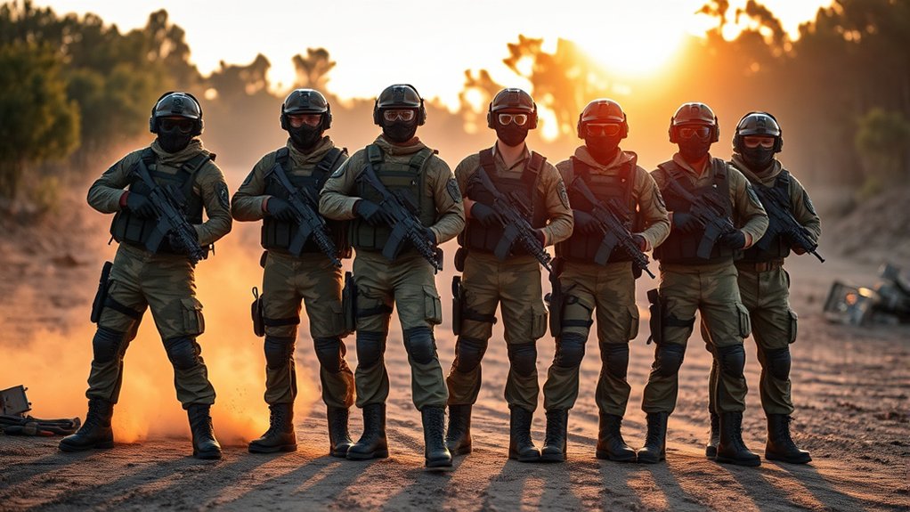 Since comfort and fit directly impact your performance, choosing the right airsoft apparel matters a lot. You want breathable fabrics like cotton or polyester blends to keep you cool and ventilated during intense gameplay. Make certain your gear fits properly. Too tight or too loose can cause distractions and chafing.