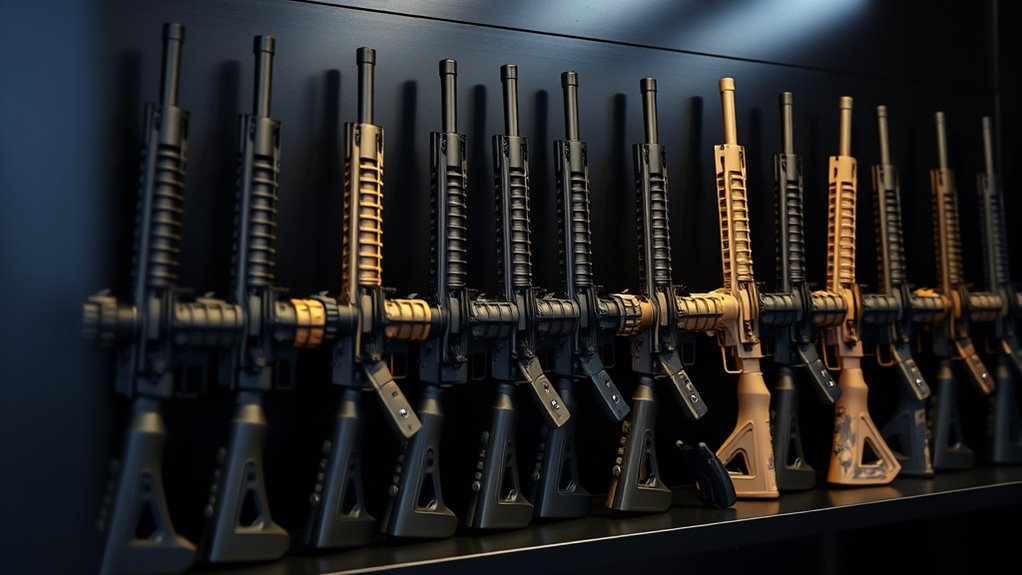 Magazine capacity options considerably shape how you play, since different mags demand different reload rhythms and carry weights. You’ll balance capacity with handling: 300-round drums extend firing, but add heft and bulk. Mid-cap magazines, around 130–150 rounds, strike a practical middle ground for reliable feeding without dragging you down.