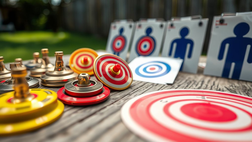 Lightweight and portable designs make setup quick and easy, while weather-resistant materials *guarantee* they last for long-term use. Keep an eye on features like changing targets and safe materials—if you wanna find out more, stick around to see the top picks for 2026.