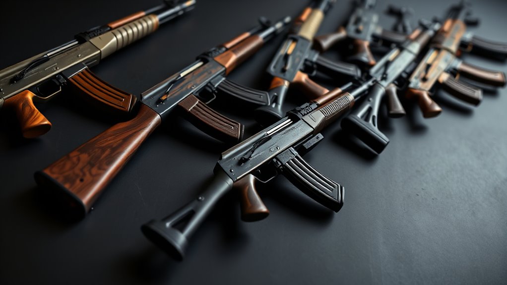 Realism features in AK-47 airsoft guns center on authentic design, weight, and markings that mirror the real thing. You’ll notice faux wood finishes, metal bodies, and detailed markings that boost visual authenticity. Realistic weight and balance help you handle the gun like a real firearm during play, enhancing your feel for recoil and control.