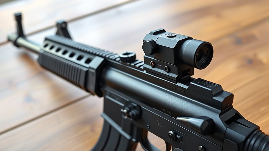 Most mounts use a standardized Picatinny rail, ensuring broad compatibility with various optics and accessories. Some models also offer tool-free installation and quick-detach features, making setup faster and more convenient. Keep in mind, the rail design affects stability and durability, especially under heavy recoil.