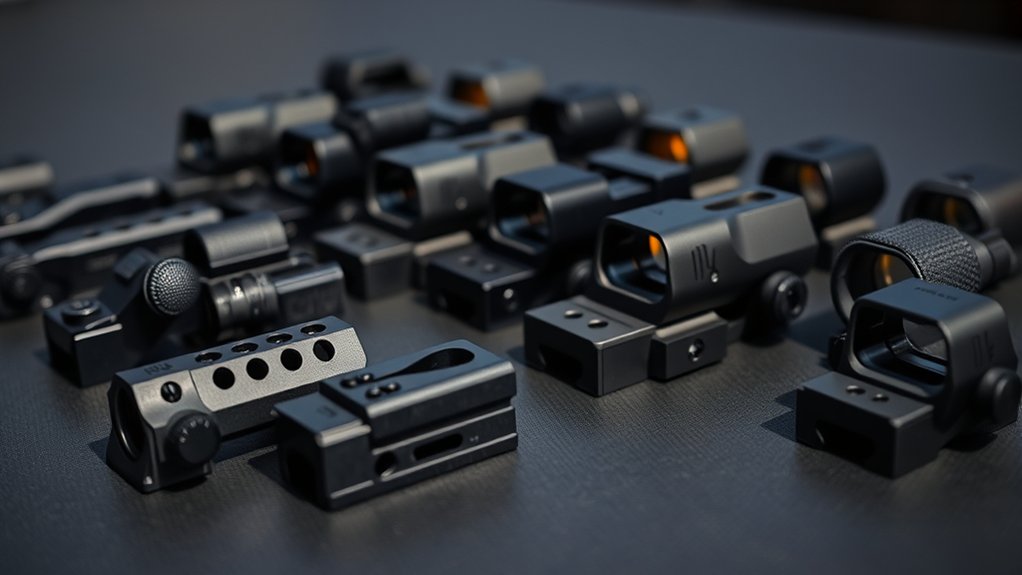 Higher sights might cause more parallax errors, forcing extra adjustments for precise shooting. Choosing the right sight profile height guarantees you get peak performance whether you’re engaging targets up close or taking precise shots at a distance.