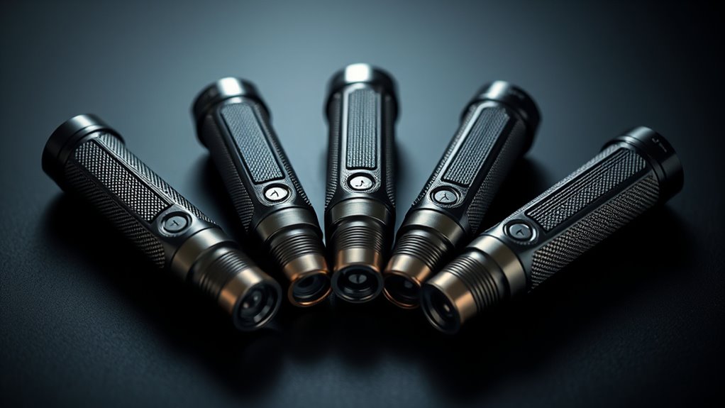 Also, choose laser lights with anti-abrasive lens coatings and rugged housings to maintain clear optics and overall durability during harsh tactical use. Focusing on these build quality aspects guarantees your laser light won’t fail when you need it most.