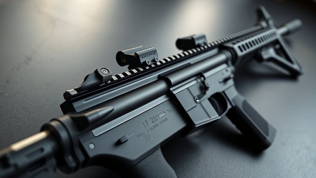 If you frequently switch setups, consider sights designed for quick attachment and detachment. By focusing on these mounting compatibility factors, you’ll assure your AR-15 sights stay firmly in place and work seamlessly with your firearm’s configuration for consistent accuracy and ease of use.