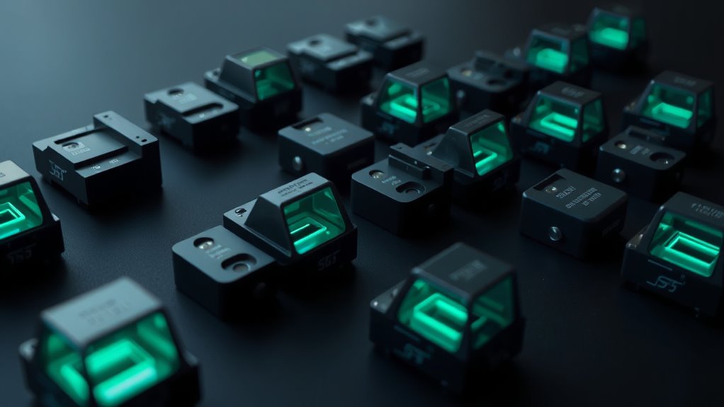 Some holographic sights provide brightness adjustments for optimized visibility in varying light, ensuring your reticle remains crisp from dawn patrol to dusk. Color choices, such as red or green, enhance contrast and target acquisition across environments. Multi-reticle systems foster consistency, letting you maintain accuracy when switching styles, reducing training time and preserving precision across your AR platform.