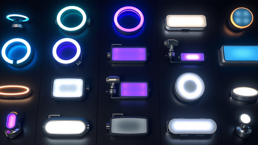 Weather resistance also relies on sealed components and O-rings that block moisture and dust, boosting durability. Choose models made from aircraft-grade aluminum or tough polymers to guarantee they endure harsh environments without losing performance. Prioritizing waterproof and weather-resistant AR lights ensures reliable operation and a longer lifespan, especially during outdoor adventures or emergencies.