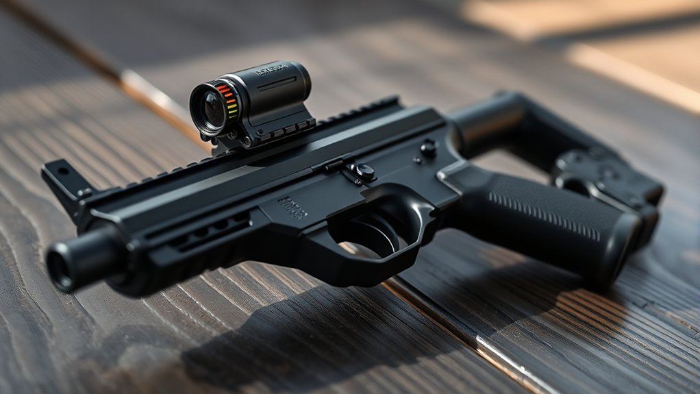 While selecting an AR pistol optic, you’ll want to carefully consider its size and weight since these factors directly influence your firearm’s handling and balance. Lighter pistols benefit from smaller, compact optics that prevent adding excessive weight, which can affect how quickly and smoothly you handle your firearm. Matching the optic’s size to your pistol’s slide or rail ensures a proper fit without any overhang.