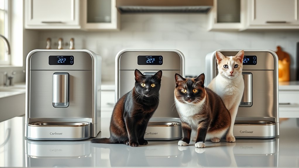 You’ll confirm compatibility before purchase, you’ll verify maintenance steps, you’ll enjoy smoother feeding for three cats.
