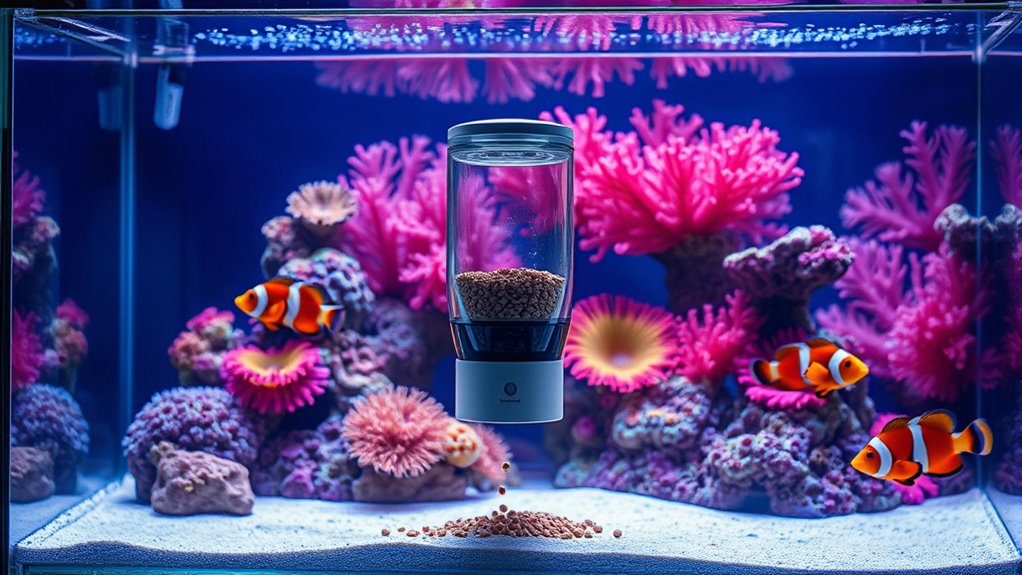You’ve got options, and your reef tank will thank you for choosing a reliable feeder. One striking stat: properly timed auto-feedings can boost coral polyps’ daytime feeding cues by up to 40%, improving color and robustness.