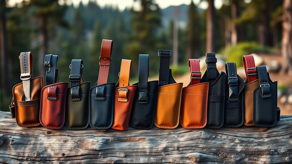 Also, consider compatibility with MOLLE webbing or belt systems; these let you position gear within immediate reach, enhancing accessibility on the trail. Prioritizing these features guarantees your holster won’t slow you down when every second counts, letting you focus on your adventure confidently and safely.