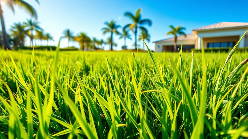 Bahia grass not only handles drought well but also grows quickly, making it ideal for Florida lawns. You’ll see it establish itself within 2-3 weeks under favorable conditions, thanks to its vigorous growth.