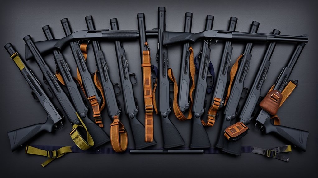 When picking a sling, you’ll want one made from tough materials like nylon or reinforced webbing to handle rough conditions without stretching or breaking. This keeps your shotgun secure and easy to carry wherever you go.