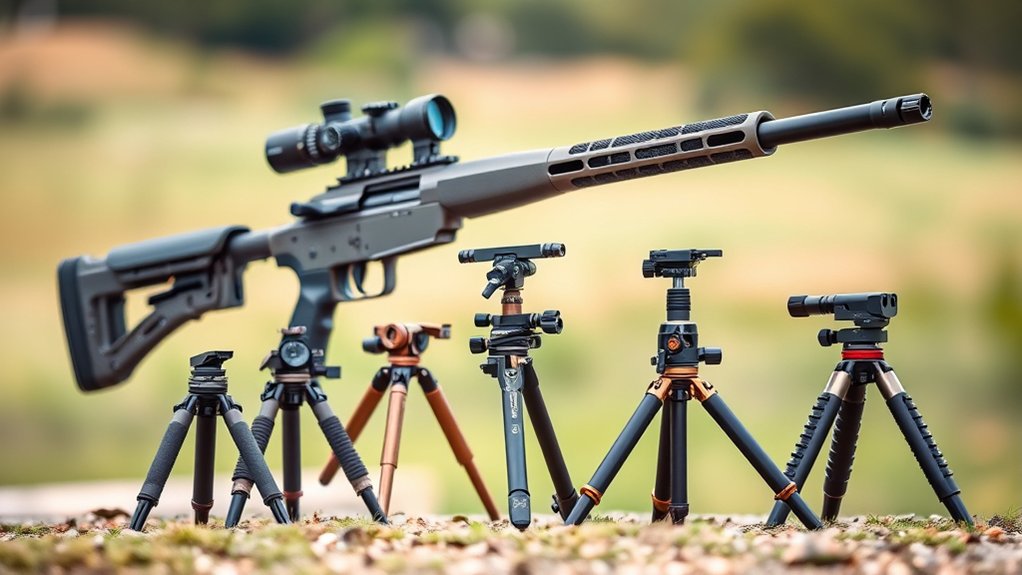 Clear, step-by-step instructions also help guarantee straightforward installation. Opt for bipods with adjustable legs and flexible mounting points to customize positioning without hassle. Lightweight and compact designs further simplify handling and mounting.