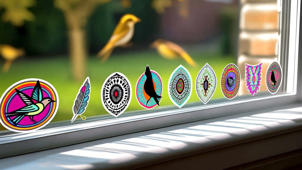 Keep in mind that larger or more distinct shapes work best because birds recognize them more easily. Decorative elements aren’t just for show; they double as deterrents, helping you enjoy beautiful windows without risking bird collisions.