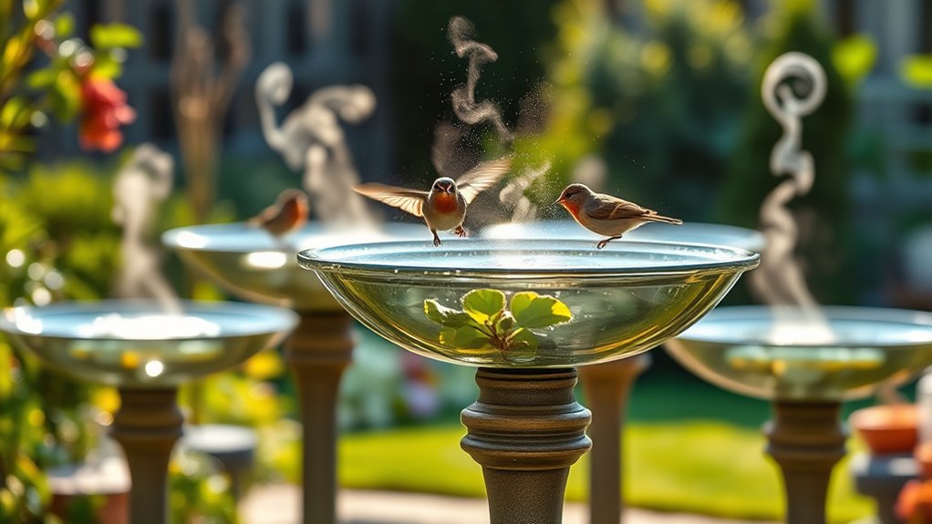 Discover the 15 best bird bath warmers for 2026 and keep water unfrozen during winter. You’ll find models with automatic thermostats, submersible designs, and durable, rust-resistant housings that fit ponds, bird baths, and waterers. Most rely on 70–120W power, 4.9–10 ft cords, and safe, energy-efficient cycling to avoid overheating.