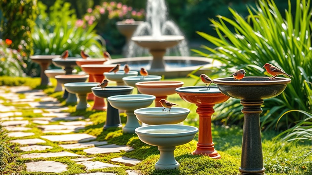Metal, plastic, and stone each bring distinct trade-offs for no-freeze bird baths. You’ll notice metal conducts heat more efficiently, helping ice melt faster, which can reduce freezing risk compared with plastic. Plastic baths are lightweight, resist cracking in cold weather, and are easy to move, though they generally have lower thermal conductivity.