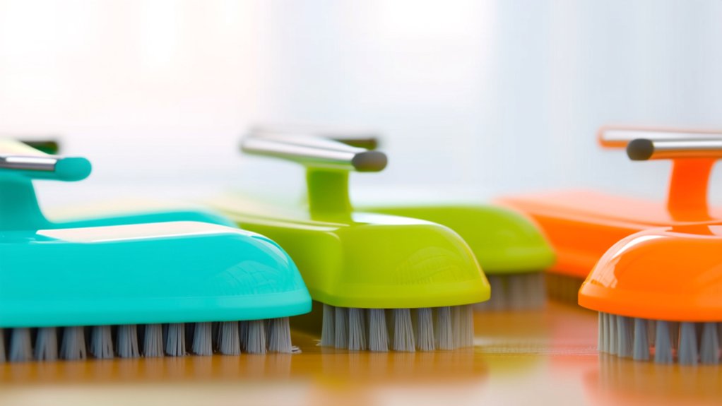 Since your bird’s health depends heavily on its environment, you should prioritize cleaners made from natural or plant-based ingredients. These guarantee a non-toxic space for both you and your feathered friend. Steer clear of harsh chemicals like bleach, ammonia, or alcohol, as they can harm pets and leave dangerous residues.
