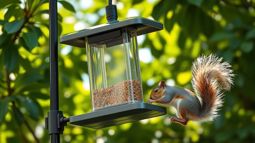 Looking for the best squirrel-proof bird feeder cameras for 2026? You’ll want models with durable, weatherproof materials, smart squirrel deterrents, and high-res cameras offering clear daytime and night vision. Features like AI bird identification, solar power with rechargeable batteries, and easy WiFi app control make watching your feathered friends effortless.
