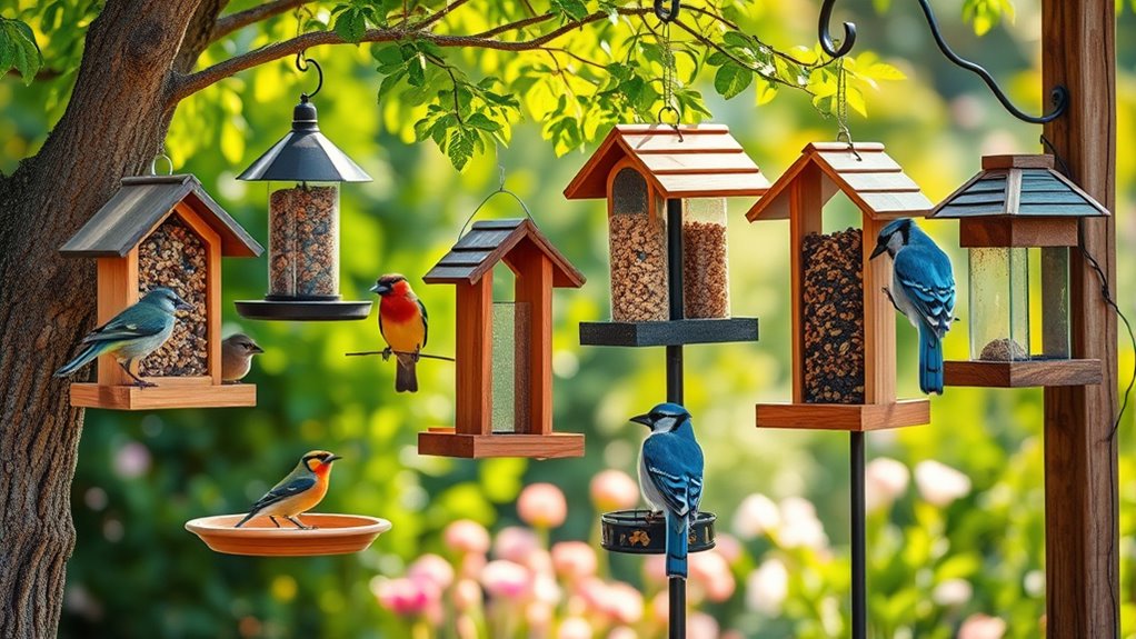 Durable finishes and mesh sides help with longevity and seed visibility. Keep going, and you’ll discover top models blending style, function, and pest defense perfectly suited for your garden.