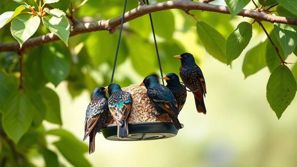 If you want to exclude unwanted species but still welcome starlings, select feeders designed with specific port sizes or exclusion mechanisms to control access. This way, your feeder stays starling-friendly and efficient.
