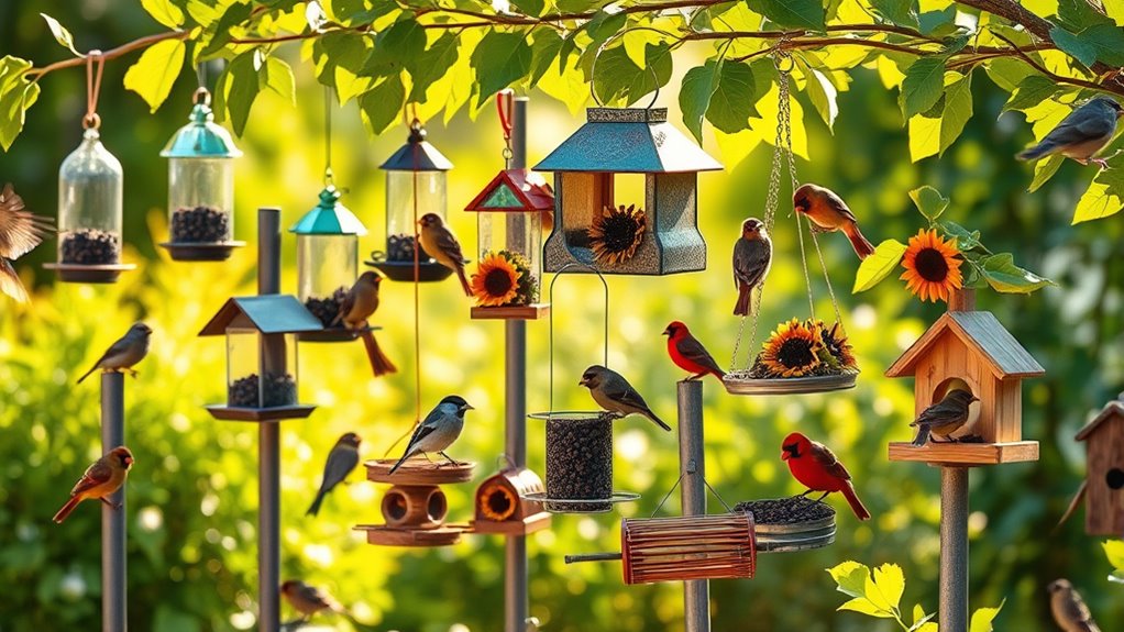 Many include decorative touches and offer broad seed compatibility. Keep exploring to discover top models and features that attract a vibrant variety of wild birds effortlessly.