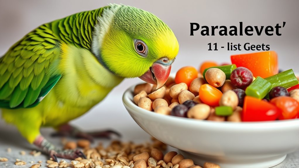 A species-specific approach helps prevent deficiencies and health issues that come from unsuitable ingredients or imbalanced nutrients. Also, consider your parakeet’s natural foraging behavior; varied textures and foods promote mental stimulation and keep eating interesting. By targeting species-specific needs, you support vitality, energy, and long-term well-being while reducing dietary risks.