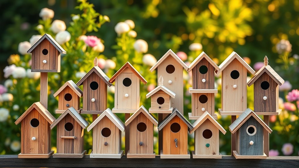 You’ll find options enhanced by eco-friendly straw nests and weatherproof finishes for longevity. Keep exploring to find which features suit your outdoor bird habitat best.