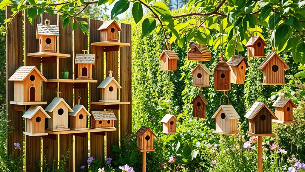 Lightweight and weather-resistant, these kits provide safe nesting spots while sparking creativity and outdoor learning. Keep exploring to discover which kit matches your needs best.