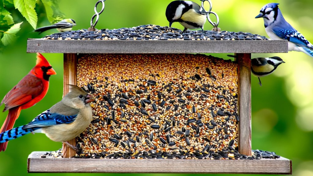 Using containers with “stay fresh” technology can extend seed quality and flavor, keeping birds interested longer. Always check your seed regularly for signs of spoilage or pests to guarantee it remains safe and nutritious.