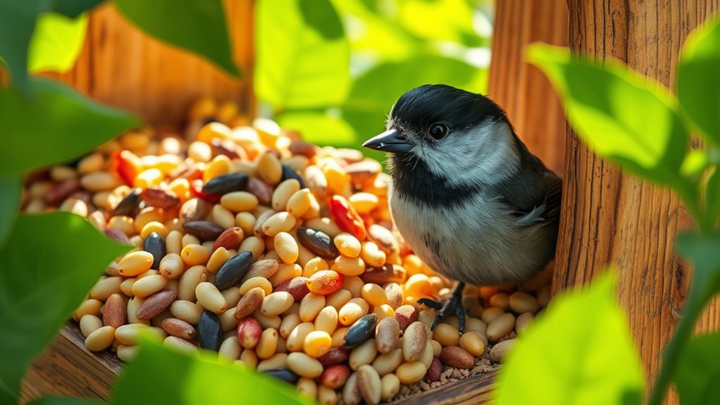 Since Ohio’s birds have seasonal feeding habits, selecting a blend with high-energy seeds for colder months helps meet their nutritional needs. Tailoring your seed choice to regional preferences guarantees you attract a variety of local species effectively.