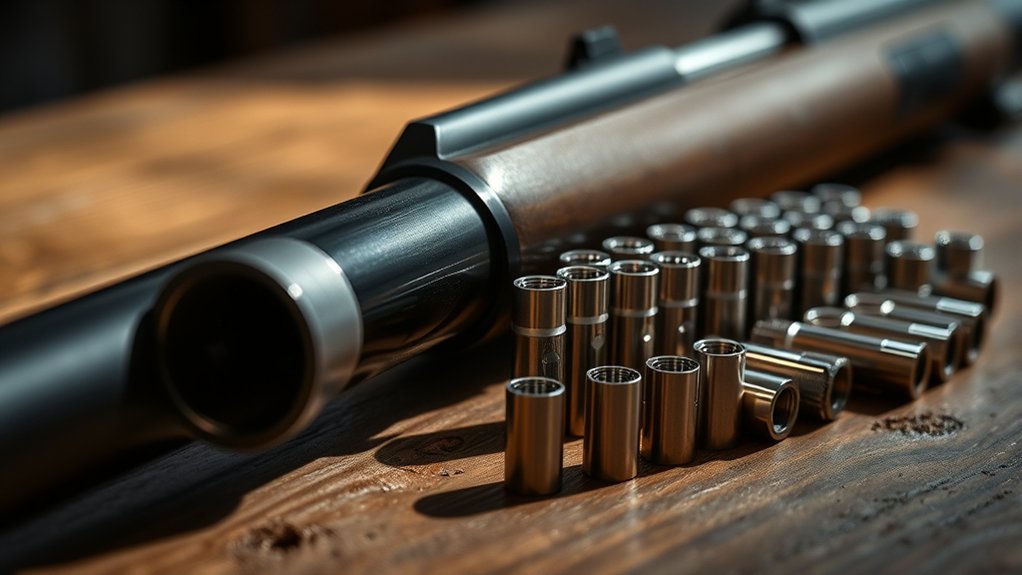 Because you rely on your bore guide to protect your firearm during cleaning, choosing one made from durable materials is essential. Look for bore guides crafted from anodized aluminum, CNC-machined aluminum, or high-strength plastic. These materials withstand repeated use without deforming or wearing down, guaranteeing your guide maintains a precise fit.