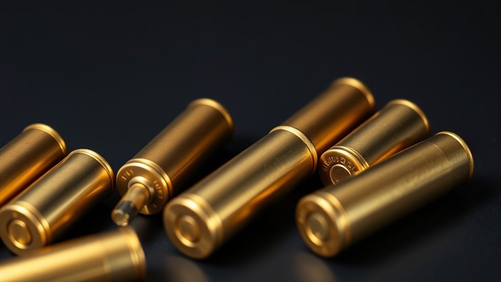 Choosing the right brass for your caliber is just the start; you also want brass that stands up to repeated use. High-quality brass with thicker walls resists cracking and deforming through multiple reload cycles, making it a smart investment. Look for brass that resists corrosion and pitting, as this durability guarantees longer service life.