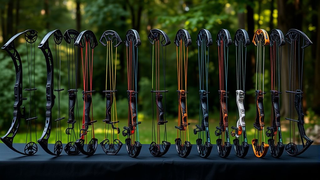 Pay attention to the strings and cables, too—premium-grade or imported materials improve shot accuracy and cut down on maintenance. A durable bow can withstand repeated adjustments and exposure to environmental conditions without deteriorating, saving you money and hassle in the long run. By focusing on these quality materials, you’ll get a reliable bow that performs well season after season, even on a budget.