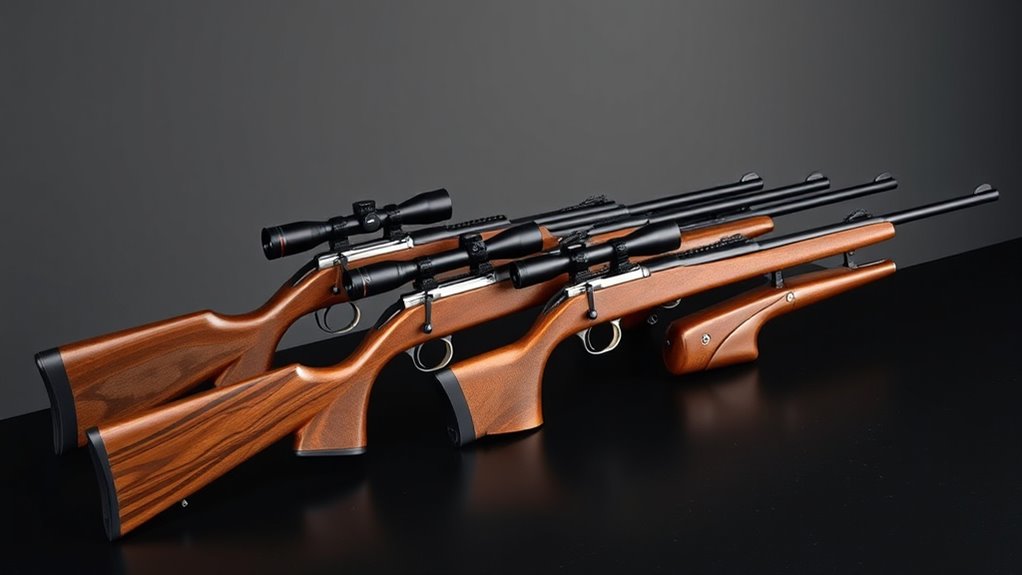 Accessory compatibility can make or break a budget PCP rifle, so look for modular mounting rails (Picatinny or Weaver) and a chassis that supports easy accessory swapping. You’ll want compatibility with scopes, bipods, and silencers to boost versatility without aftermarket headaches. Modular rails let you attach or swap components quickly, tailoring the rifle to your chosen activity.