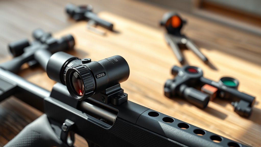 Don’t forget eye relief, usually about 2.36 inches, which guarantees comfortable sight alignment. Also, consider the objective lens diameter, ranging from 20mm to 40mm, as it affects light transmission and field of view, key for clear target acquisition.