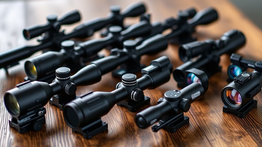 Some optics offer dual reticles, combining a small dot with a larger circle, giving you the best of both worlds—precision and speed. You’ll also want to think about whether you prefer a simple dot or a circle-dot reticle, as the latter helps track moving targets better. Don’t forget to check for adjustable brightness to keep the reticle clear in different lighting.