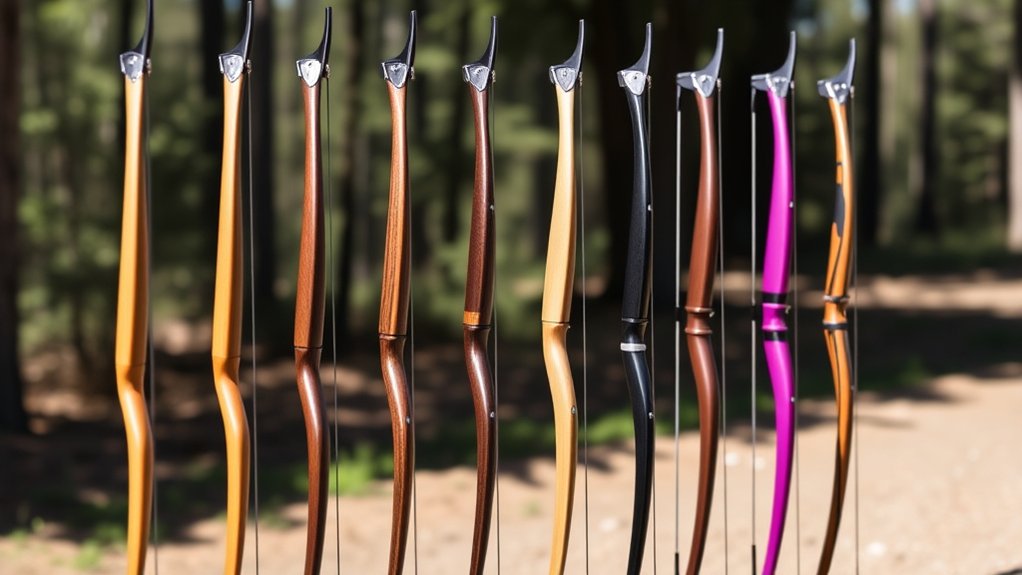 Modifying draw length through limb adjustments ensures a comfortable fit, helping you maintain proper form and reduce fatigue. Interchangeable limbs add flexibility for different shooting scenarios, whether for target practice or hunting, without needing a new bow. Precise adjustment mechanisms, like limb bolts or screw systems, are crucial for secure, consistent settings.