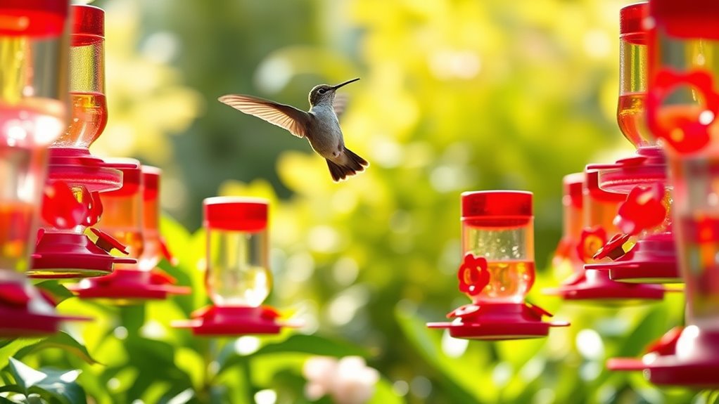Designs range from natural looks to glass aesthetics with nectar protection features and easy cleaning. Curious about which model fits your setup and budget? You’ll uncover more below.